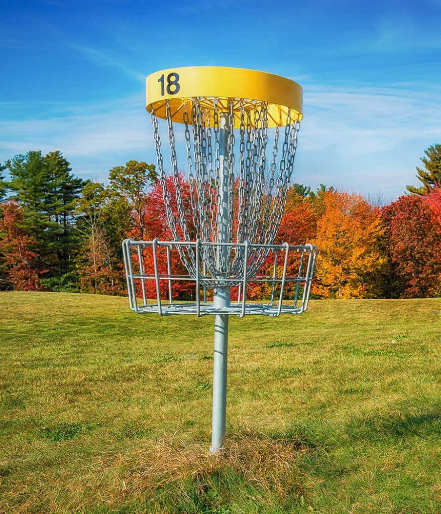 Entry to the course is by the parking lot beside Maggs Park. Here you will find the course kiosk, practice basket, lost disc return box and towards the lake will be the first hole. The first basket plays through the woods and up the hill alongside the lake.