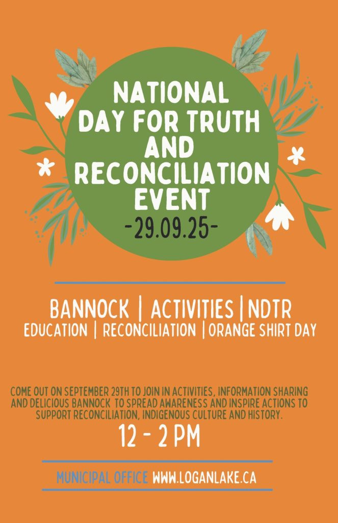 To commemorate this day, the District of Logan Lake will raise an orange flag at the municipal office to honour the historic tragic loss of indigenous children at Canada’s residential schools, and to stand in solidarity with the families, survivors, and communities who continue to suffer the impacts of past Canadian policies.