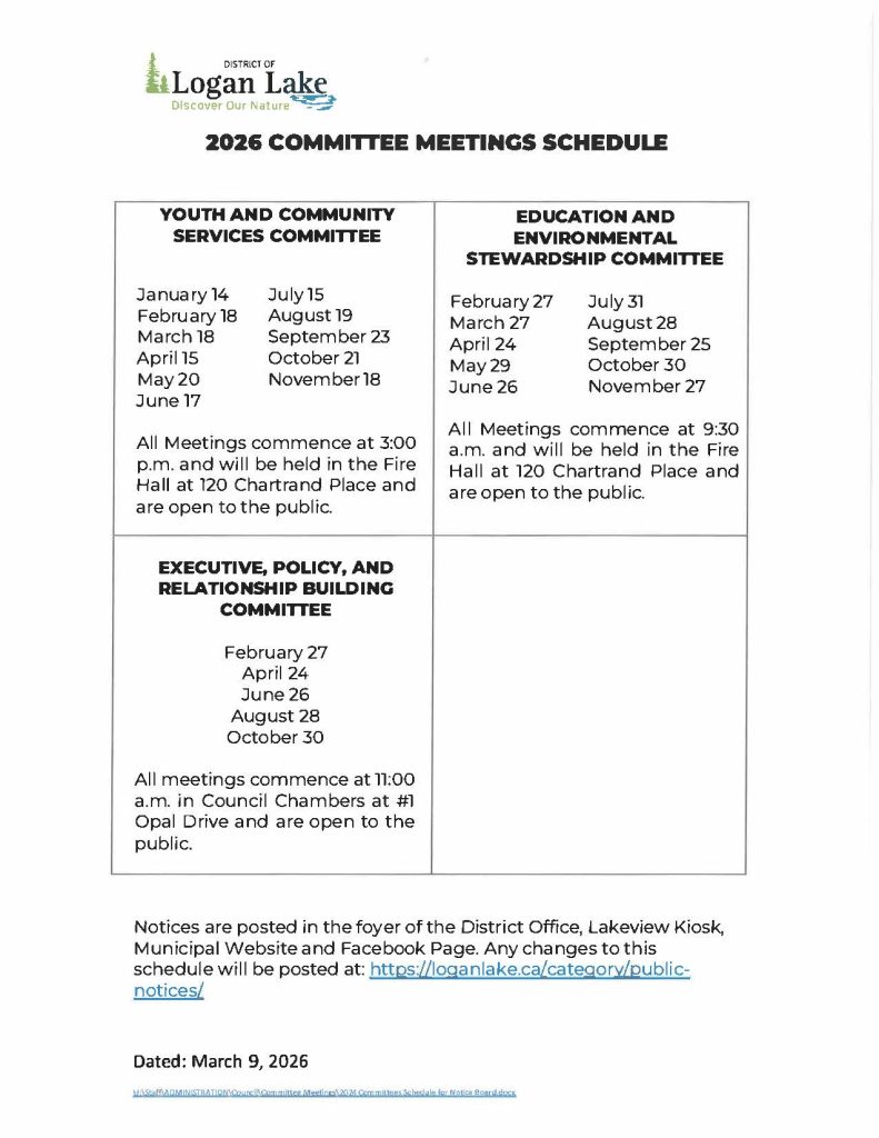 Open House – Official Community Plan & Zoning Bylaw Update Tuesday, March 10, 2026 | 3:00 pm – 7:00 pm Logan Lake Fire Hall The District o...